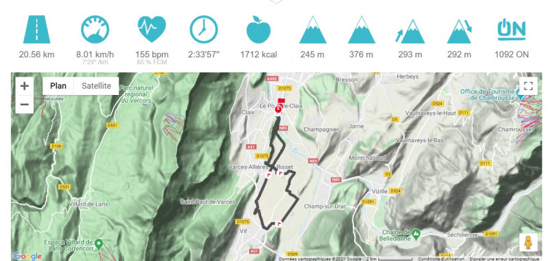 Entrainement sous un beau ciel gris et une temperature idéal pour courir, au départ de Claix nous avons visité la plaine de Reymure avec une petite bosse pour les plus courageux le grand rochefort...