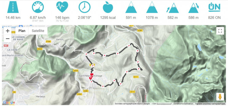 Entrainement au départ de st Martin d Uriage, une belle matinée idéale pour une montée au Seiglières.15 Kms et 550 D+.