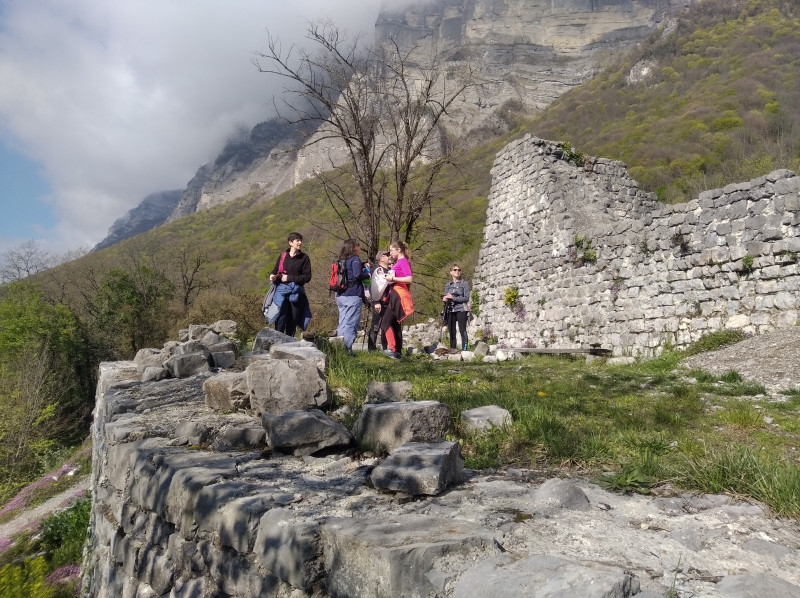 Sortie sur les hauteurs de Crolles avec pour les marcheurs une visite commentée par une association de sauvegarde du chateau de Montfort.