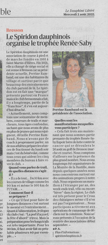 Le Spiridon a l'honneur dans les pages actu locale du Dauphiné Libéré du 08 Aout 2023.