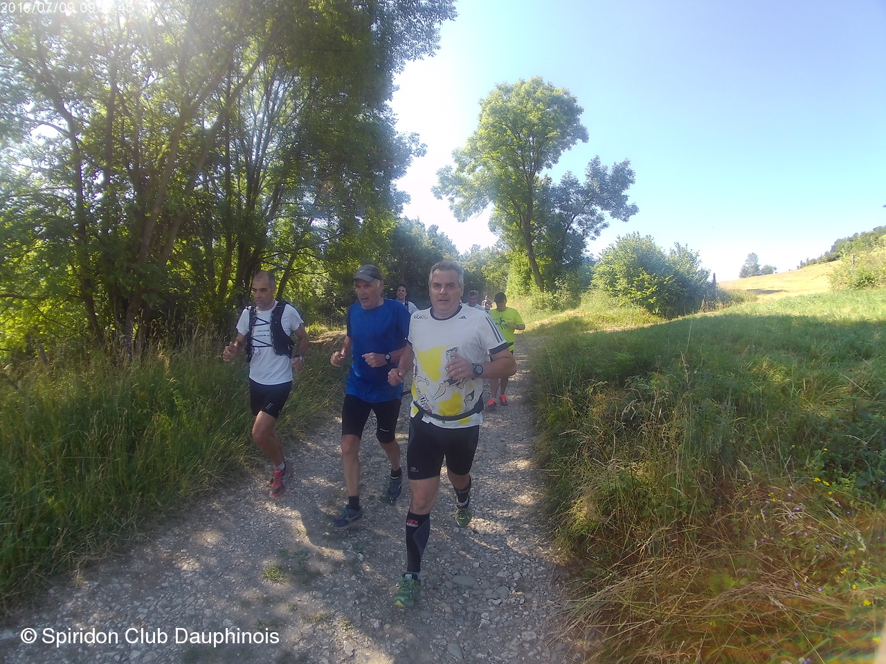 Une douzaine de Spiridoniens et 2 marcheurs pour un entraînement estival sur les hauteurs d'Herbeys  : passage par le hameau du Goûter, les crêtes de Villeneuve d'Uriage et retour par Romage. Super récompense à l'arrivée : piscine et apéro bien copieux, merci Corinne et Lucien. Bienvenue à Xavier qui a fait son premier entraînement avec nous.